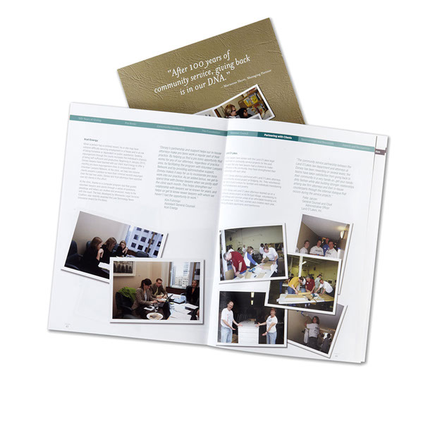 Dorsey Whitney, one of Minnesota’s most prestigious law firms asked us to help the firm celebrate 100 years of service, Kenyon created a centennial logo, and branded it to a website, 72-page commemorative book, Mall banners, posters, print ads, video and more.