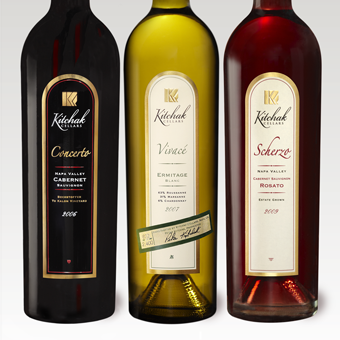 As part of the overall marketing for a start up vineyard in Napa Valley, Kenyon designed the packaging for Kitchak Cellars.