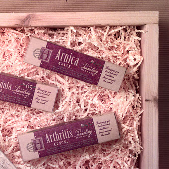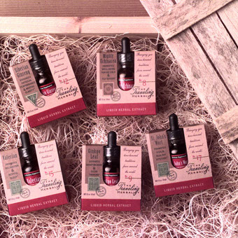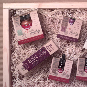 Traveling Herbalist, a company we named and branded; a line of homeopathic products as distinctive as the category. Products included tinctures, supplements, creams and teas.